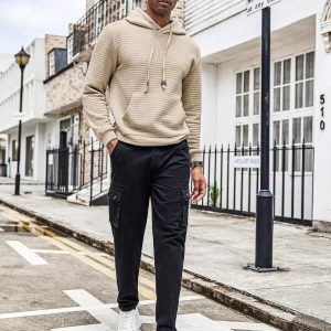 Mens Hoodies Sweatshirts Long Sleeve Fashion Waffle Knit Pullover Hoodie with Pocket